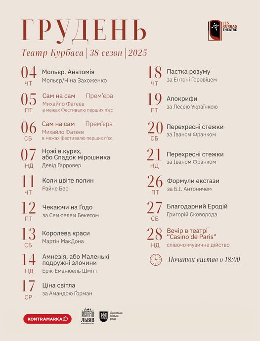 🤍❄️ ГРУДЕНЬ у Театрі Курбаса ❄️🤍