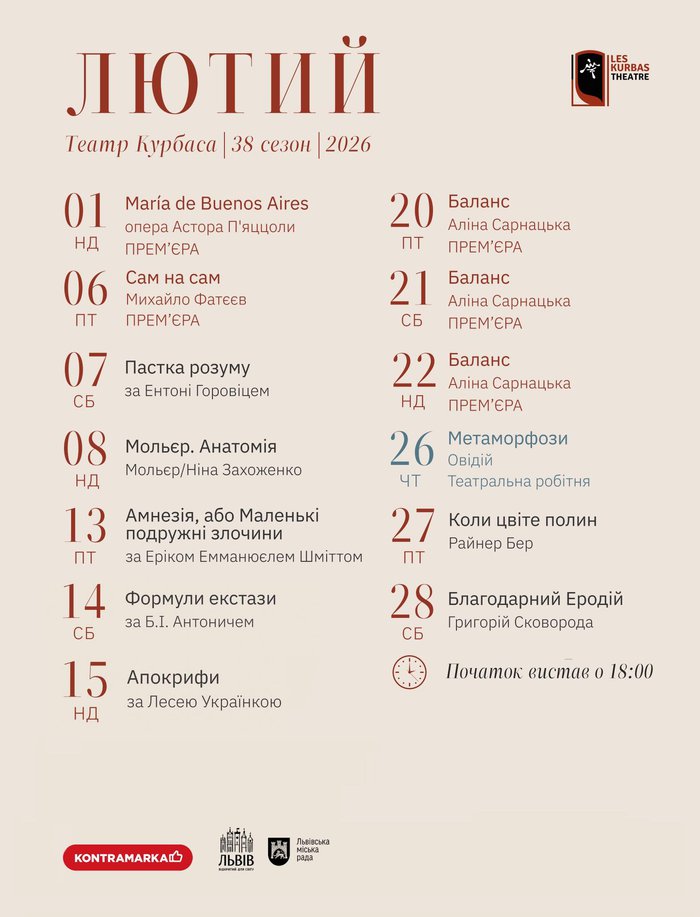 Репертуар на лютий 2026