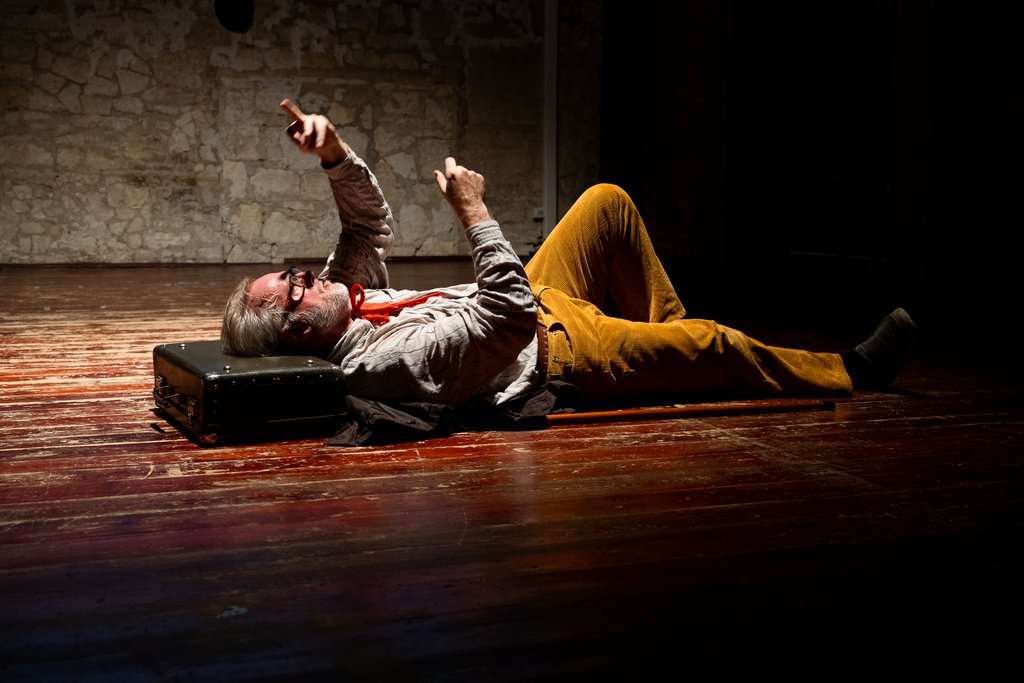 На сцені театру з'являється дивний чоловік. Він називає себе актором і розповідає про себе, а ми стаємо бранцями його історії, його долі, його містифікацій, його гри уяви, його мрії зіграти роль короля Ліра, його надзвичайної щирості і прихованих таємниць, які можна вгадати, не знаючи, де проходить межа між вигадкою і реальністю....