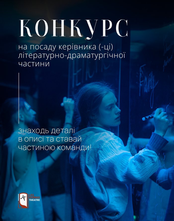 Львівський академічний молодіжний театр імені Леся Курбаса оголошує конкурс на заміщення вакантної посади: