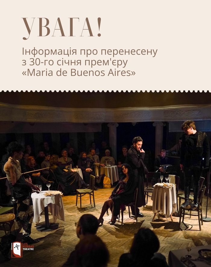 Увага! Премʼєрний показ вистави «María de Buenos Aires», який ми були змушені скасувати раніше, відбудеться 13 березня.