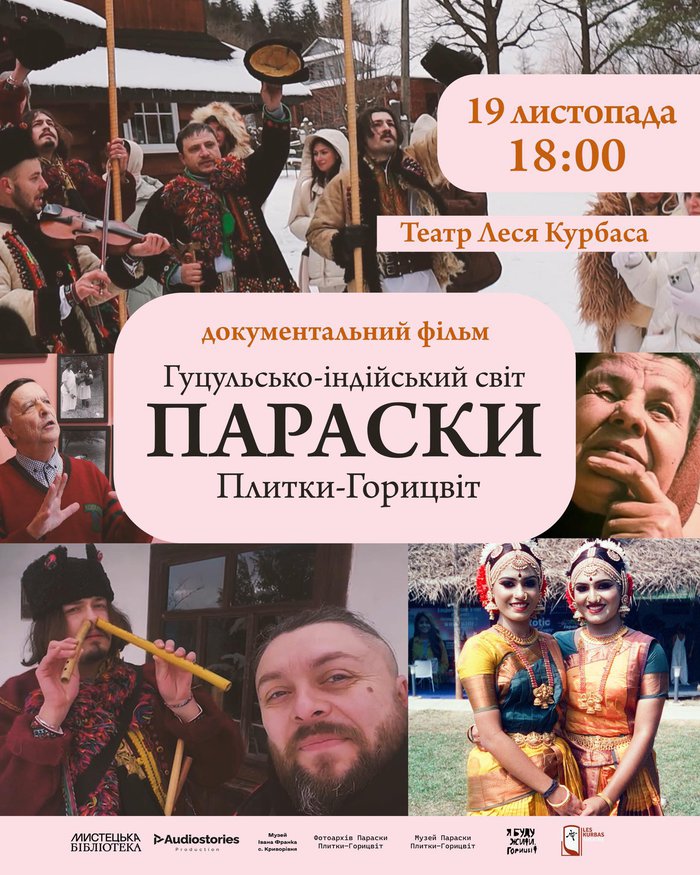 В межах виставки «Заграви Параски Плитки-Горицвіт», яка триває в Мистецькій Бібліотеці, запрошуємо в Театр Курбаса на прем'єру документального фільму Володимира Ольшанського «Гуцульсько-індійський світ Параски Плитки-Горицвіт»