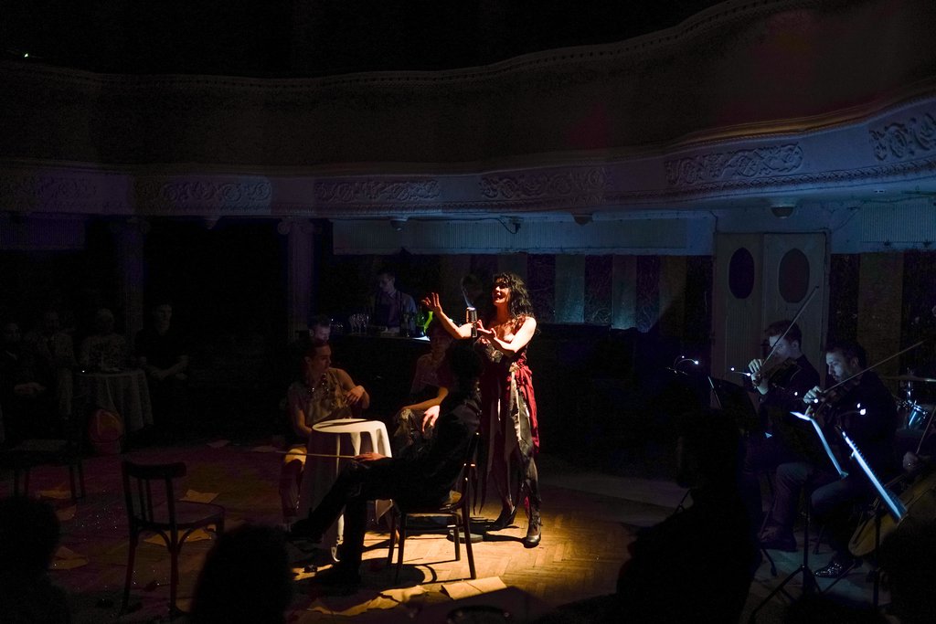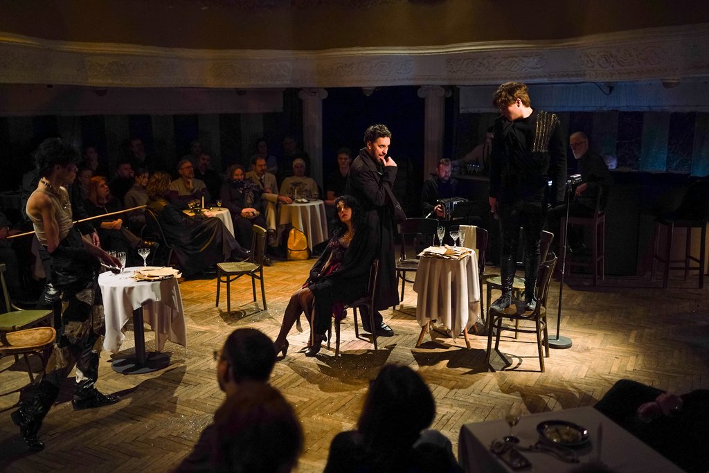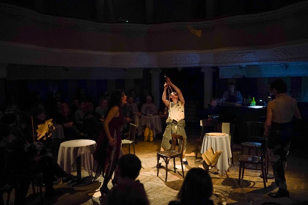 Постановка занурює глядачів у атмосферу європейського міжвоєнного міста-метрополії, яким колись був Львів. А глядацький зал перетворюється у яскравий і шумний ресторан-вар’єте – у стилі славнозвісного «Casino de Paris», що діяв у 1910-1930-х роках у приміщенні Театру Леся Курбаса.